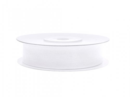 Vitt satinband i olika bredder - En rulle består av 25 meter band.