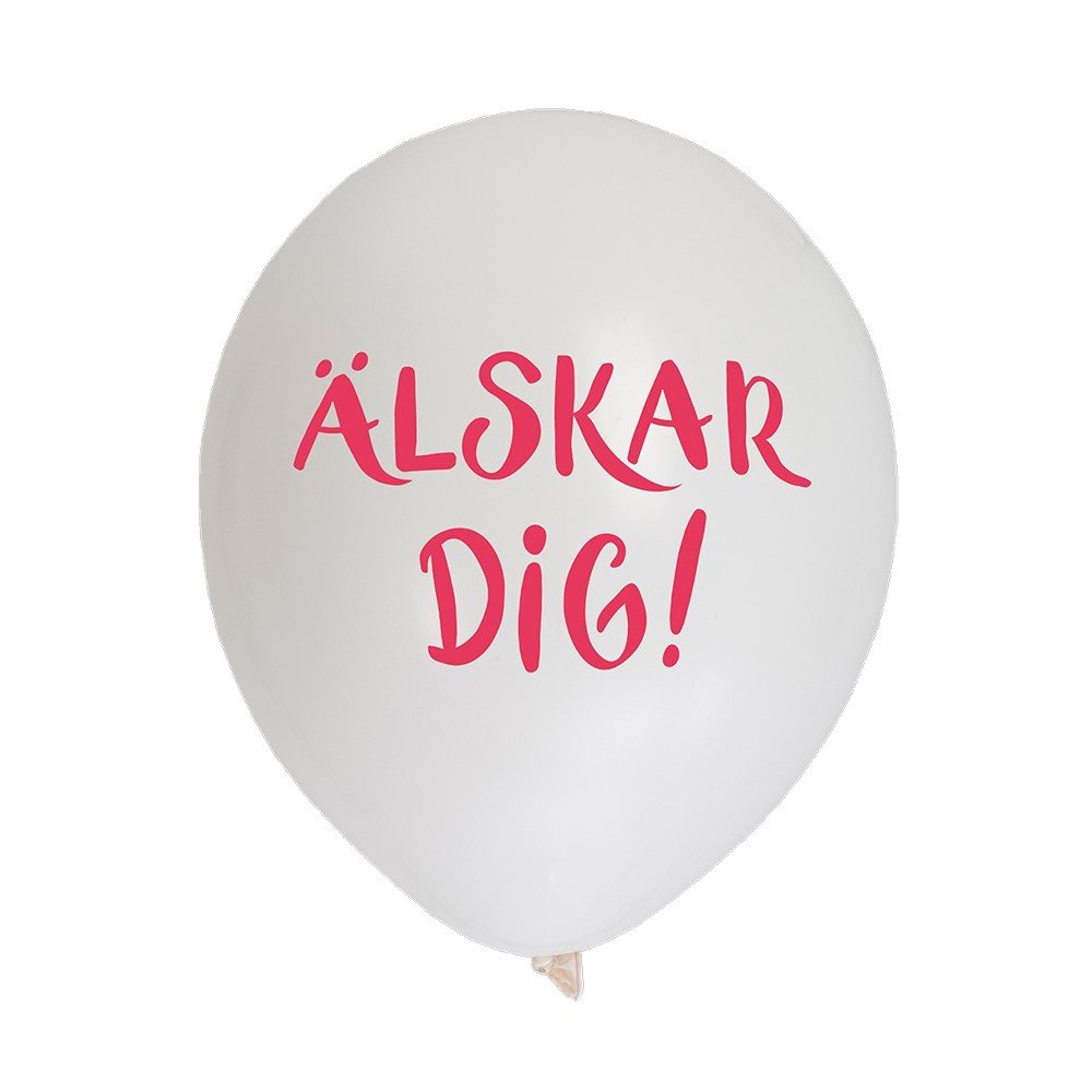 6-pack vita ballonger med texten "Jag älskar dig" i rosa.
