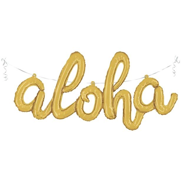 Härlig folieballong till sommarfesten - Guldiga bokstäver "Aloha".