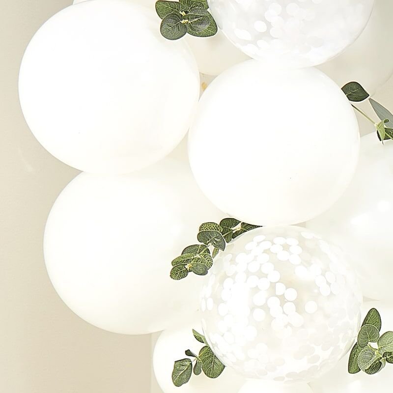Addera kvistarna i ballongbågen, dukningen eller i små vaser.