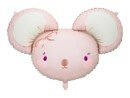 Folieballong formad som en rosa mus med färgade detaljer. Det ingår ett sugrör för att blåsa upp ballongen och den kan blåsas upp med helium eller luft.