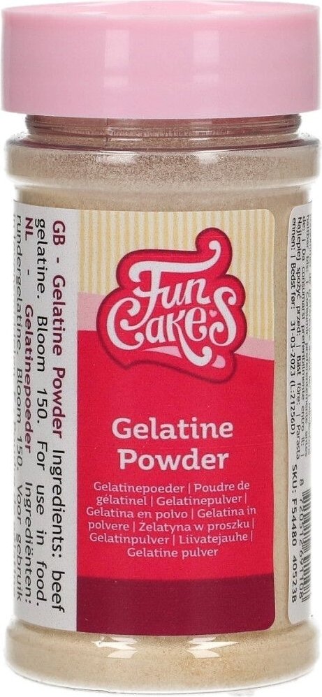 Rent gelatinpulver, tillverkat av nötköttsskin, med en bloom på 150. Bloom är gelatins gelande kraft, vilket är viktigt för kvaliteten. Dessa värden ligger vanligtvis mellan 50 och 300, och indikerar gelatinets förmåga att gelea och ge fasthet.Detta högkvalitativa gelatinpulver är lämpligt för flera olika områden, men särskilt för att förstärka grädde till t ex tårtor, men även för att göra mousse, bavarois, pudding och fruktgeléer. För varje liter produkt behövs ca 20 gram gelatinpulver om syftet är att uppnå en visst fastihet i t ex grädde, eller ca 40 gram att skapa en puddingliknande konsistens.Innehåll: 60 gram.Ingredienser: gelatin (nöt). Produkten är halalcertifierad.