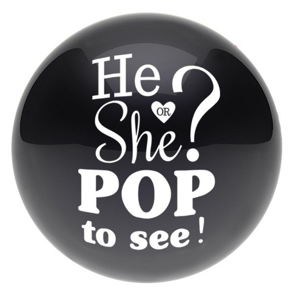 Svart jätteballong He or She? att fylla med rosa eller blå konfetti och sedan poppa på baby showern eller gender reveal-partyt för att avslöja om det är en pojke eller flicka som väntar där inne!