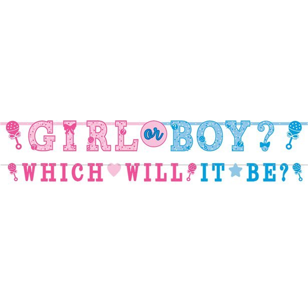 Superfin girlang i två delar till baby showern eller gender reveal partyt.