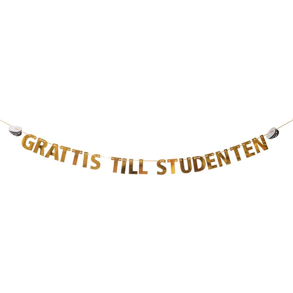 Superfin girlang i guld med studentmössor - Grattis till studenten.