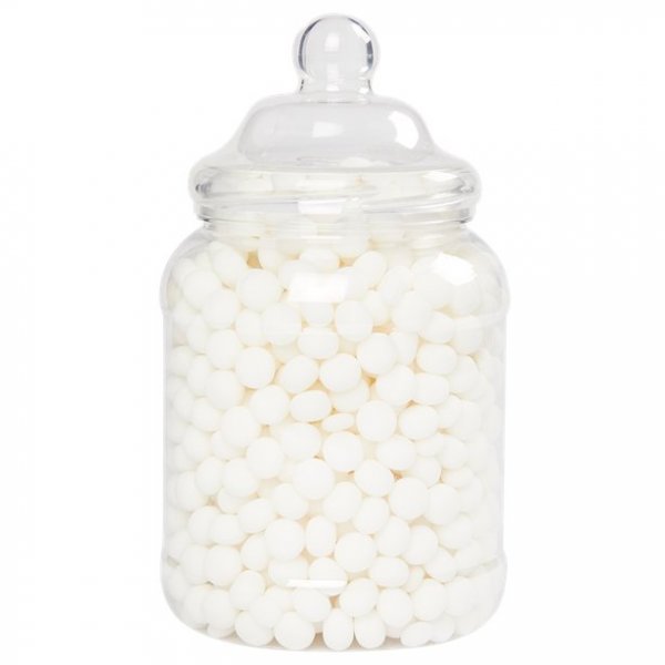 Godisburk med lock. Rymmer cirka 2,25 liter. Burken är tillverkad i plast, är ca 24 cm hög och har en bottendiameter på ca 13 cm