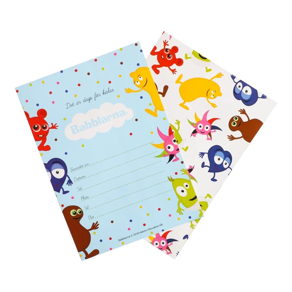 Färglada inbjudningskort med de älskade Babblarna-karaktärerna. Perfekta för att bjuda in till barnkalas och skapa förväntningar inför festen. Paketet innehåller 8 st kort.