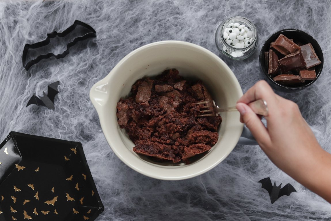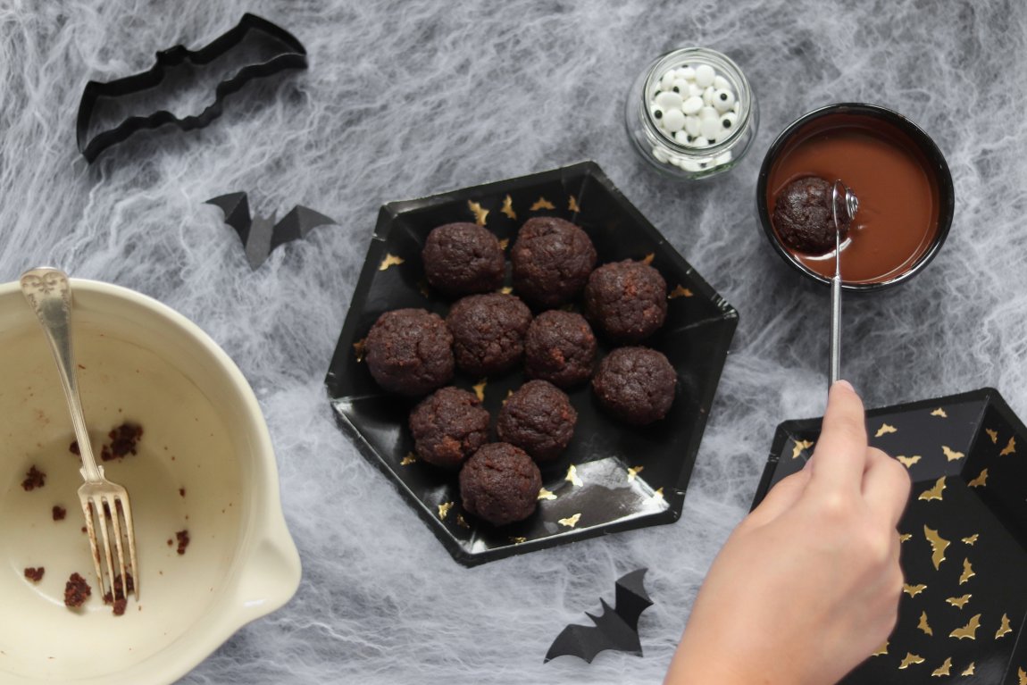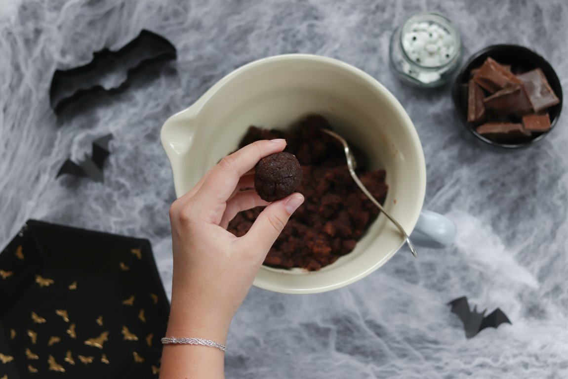 Rulla bollar av kladdkakesmulorna.