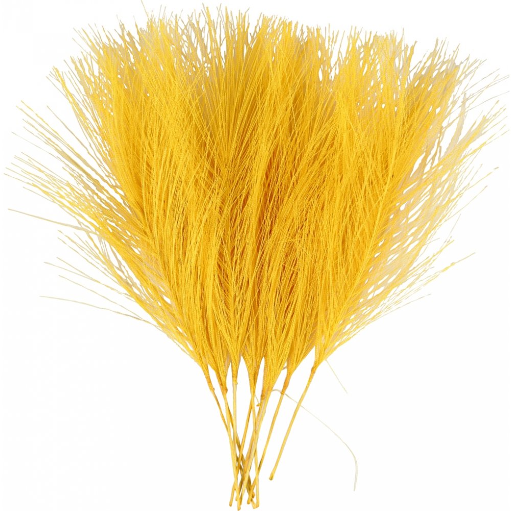 10 st gula konstgjorda fjädrar.