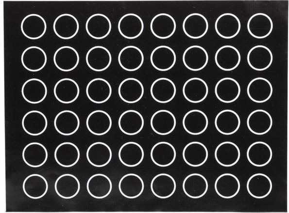 Baka perfekt formade macarons med denna bakmatta från Patisse! Mattan har 48 hål, vilket gör att du kan göra 24 macarons åt gången. Bakmattan är platt och har rundlar tryckta direkt på ytan. Denna matta har inga kanter, vilket underlättar användningen. Perfekt för att få dina macarons att se fantastiska ut!