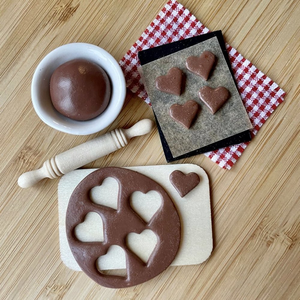 Fantastiskt sött bakkit i miniatyr till nisse - har hen bakat pepparkakor under natten? I kittet ingår skål med deg, kavel, bakduk, bricka, utkavlad deg & pepparkakor.