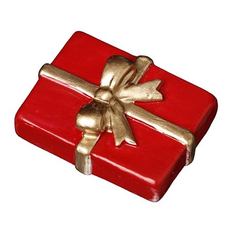 Liten julklapp till nissedörren - rött paket med guldsnöre.