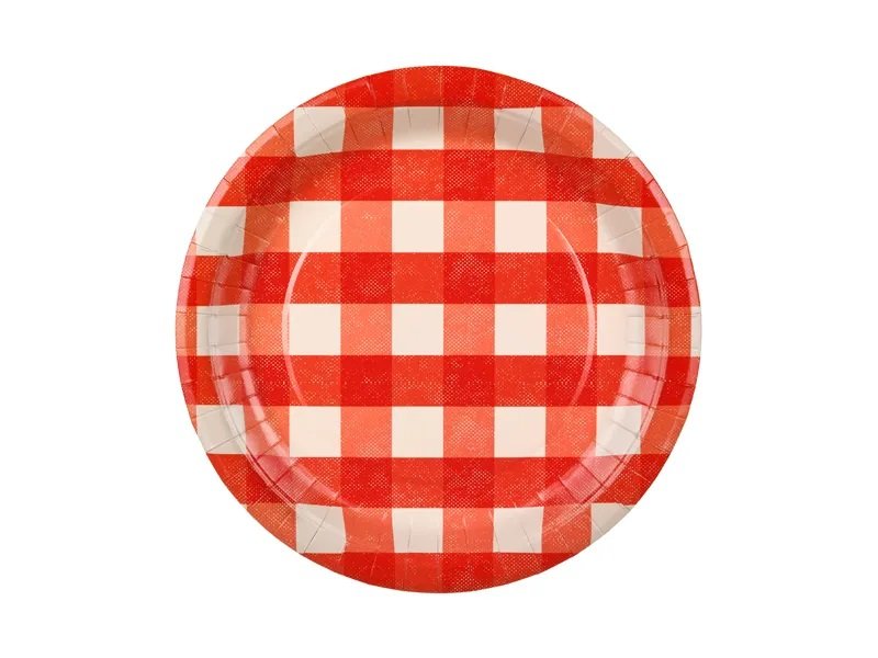 6-pack rödrutiga papptallrikar. Perfekt till grillfest, picnic eller andra kalastema.