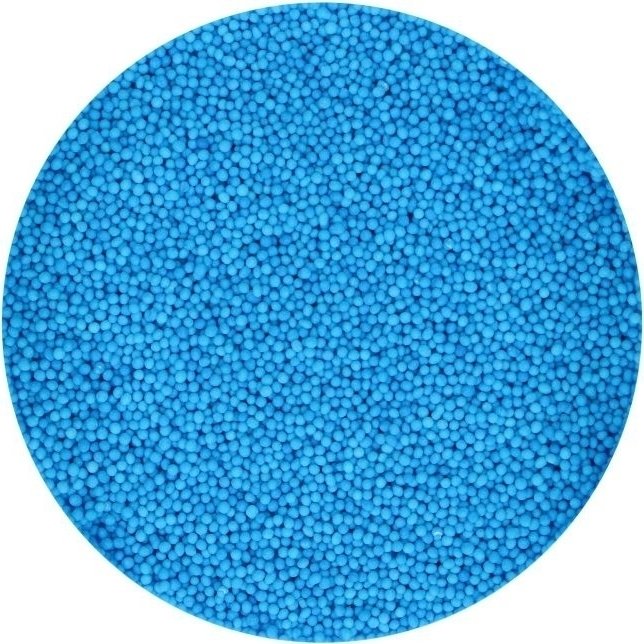Små sockerpärlor, nonpareils, i blått. En burk innehåller cirka 80 gram.Ingrediener: socker, stärkelse (vete, majs), glukossirap, färgämne (E131), vegetabiliskt fett, (kokos, raps) ytbehandlingsmedel (E901).