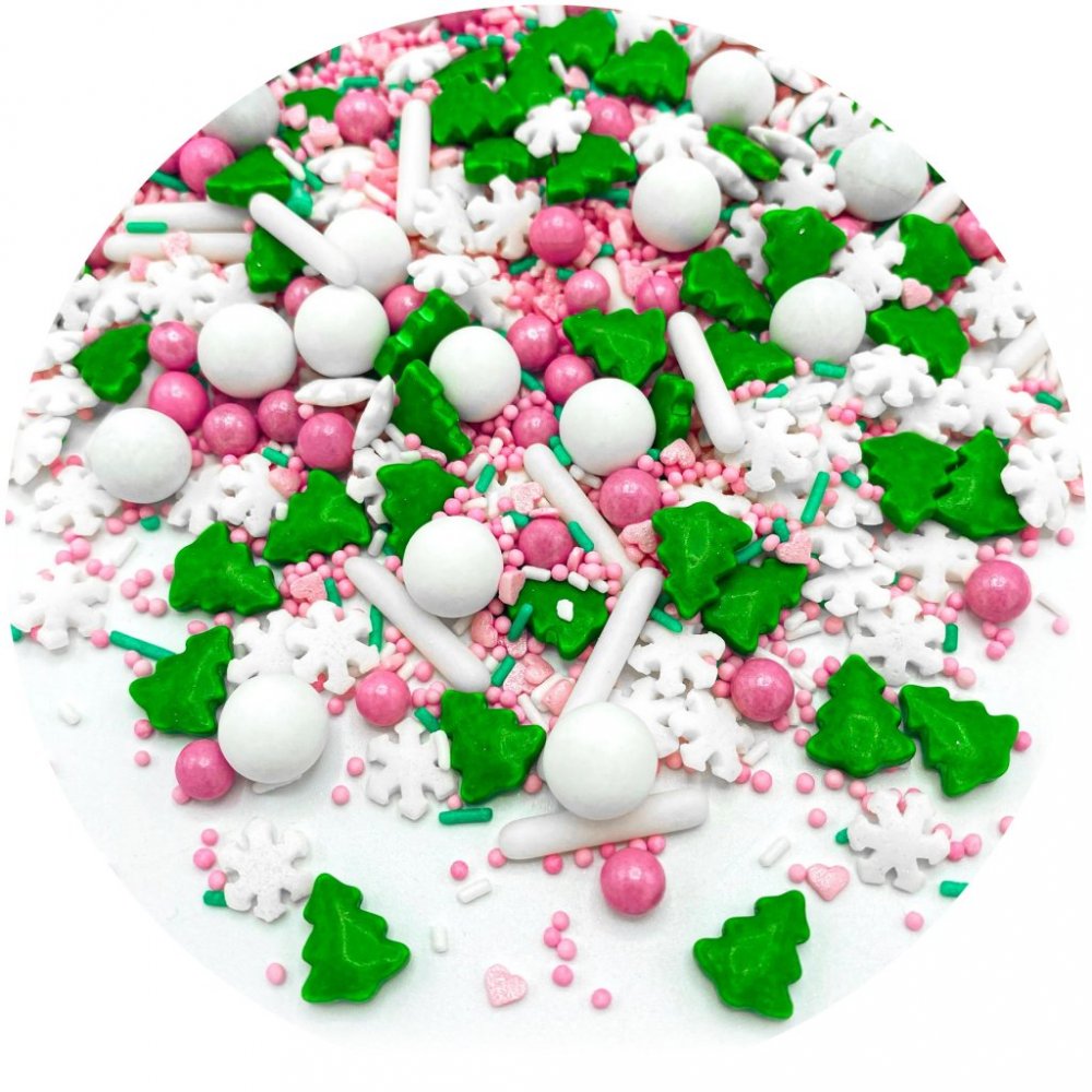 Fantastiskt fin strösselmix med granar, snöflingor, chokladpärlor och andra fina strössel.