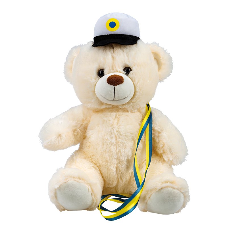 Supersöt, stor nallebjörn med studentmössa och gult/blått band - Perfekt att hänga runt halsen på studenten.