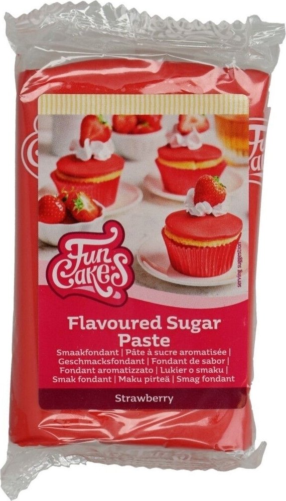 250 gram sockerpasta i med en härlig jordgubbssmak. Sockerpastan är lättarbetad och kan användas till att täcka tårtor eller göra dekorationer till tårtor och bakverk. För att täcka en tårta som är ca 26 cm i diameter går det åt ca 500 gram sugarpaste. Ingredienser: socker (79%), vegetabiliskt fett (palmkärna, palm), glukossirap, jordgubbskoncentrat (3%), fuktighetsbevarande medel (E422), naturliga aromer, emulgeringsmedel (E471), förtjockningsmedel (E415, E466), surhetsreglerande medel (E330)konserveringsmedel (E200), färgämne (E129*)*kan ha en negativ effekt på aktivitet och uppmärksamhet hos barn.