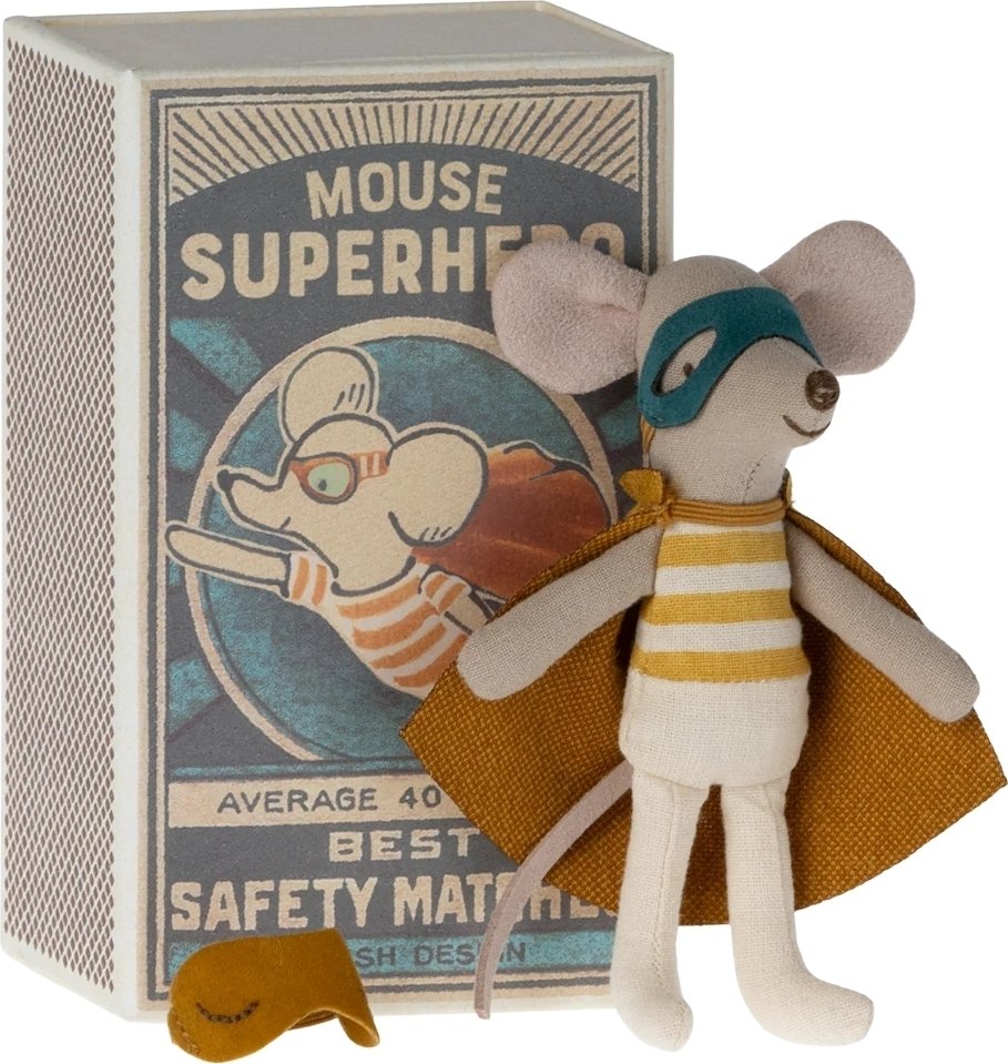 Bedårande superhjältemus från Maileg, levereras i vacker låda.