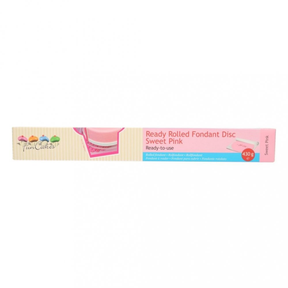 Färdigutkavlad sugarpaste i ljusrosa - det enklaste sättet att täcka en tårta! Denna fondantskiva med god vaniljsmak är redan utkavlad och kan användas direkt på tårtan!