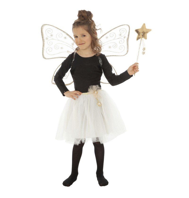 Fint utklädningskit som innehåller vingar, trolltav och en vit tyllkjol,
