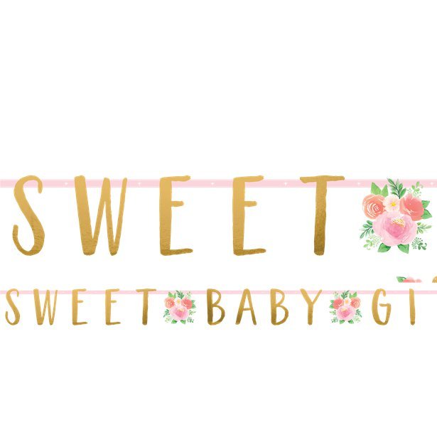 2-pack girlanger med underbar design med blommigt mönster. En stor girlang som är 2 meter lång med 25 cm höga bokstäver och en liten girlang som är 1,8 meter lång med 10 cm höga bokstäver.